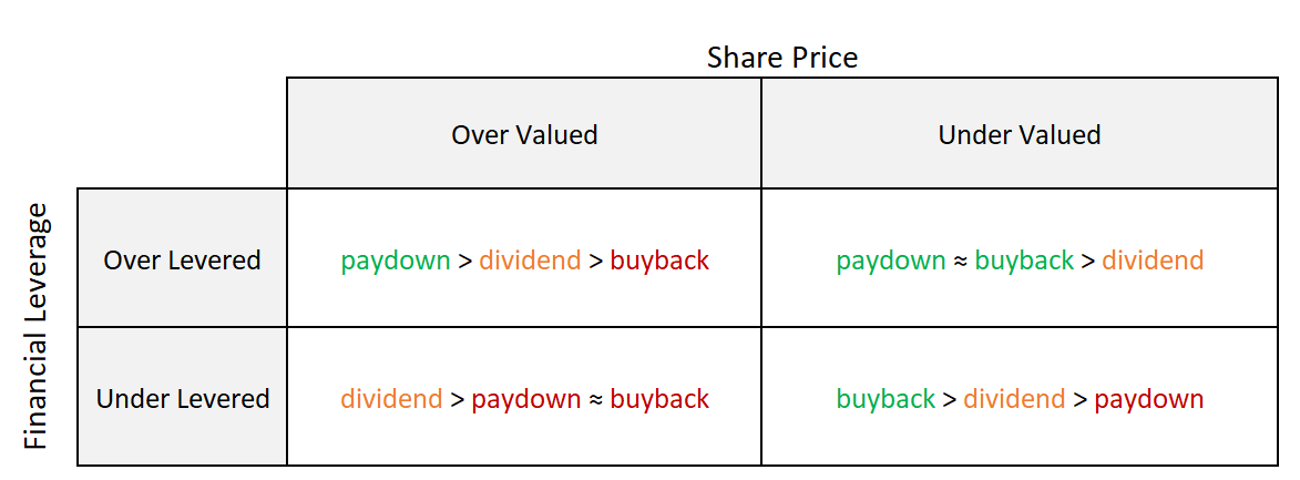 More broadly, here’s a decision matrix for companies that want to think about how to distribute their cash flows: